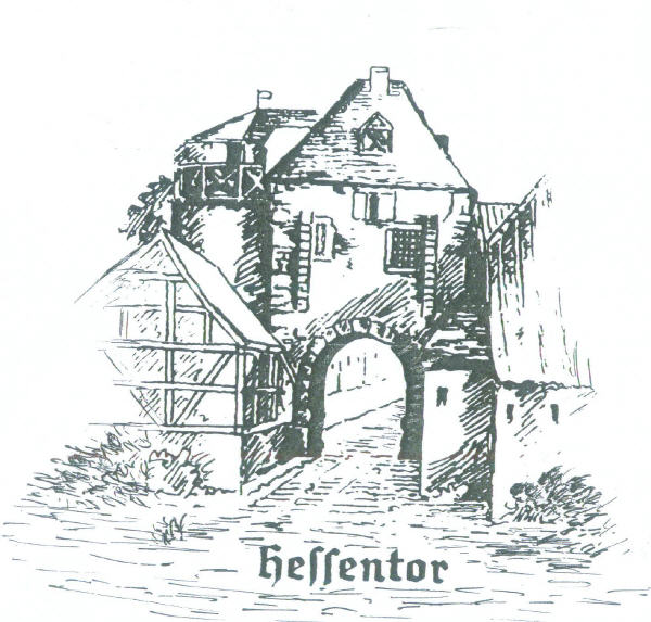 Der Name erinnert an die Besatzung hessischer und französischer Truppen während des Dreißigjährigen Krieges (1618-1648). Es wurde als sechstes Stadttor 1646 am unteren Ende des Marktes, dem Fischmarkt, errichtet und sollte den hessischen Truppen eine Verbindung zur Schanze am Rhein ermöglichen. Das Tor wurde bereits 1829 wieder abgerissen.