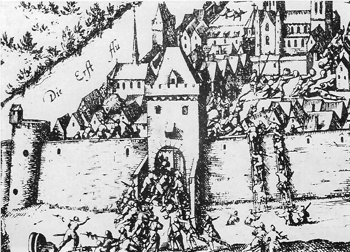 Nachdem sich das ursprüngliche Stadtgebiet im Hochmittelalter über den Glockhammer, dessen gerundete Straßenführung den Abschluss des stiftischen Immunitätsbezirkes bildete, nach Nordwesten vorgeschoben hatte, wurde die Rheinstraße mit dem abschließenden Rheintor zu einer der wichtigsten Ausfallstraßen. Sie führte vom Rheintor nach Heerdt und Niederlörick, setzte über den Rhein und bog dann über Kaiserswerth in den Hellweg ein.