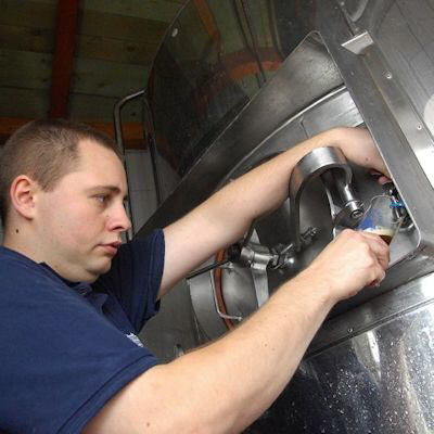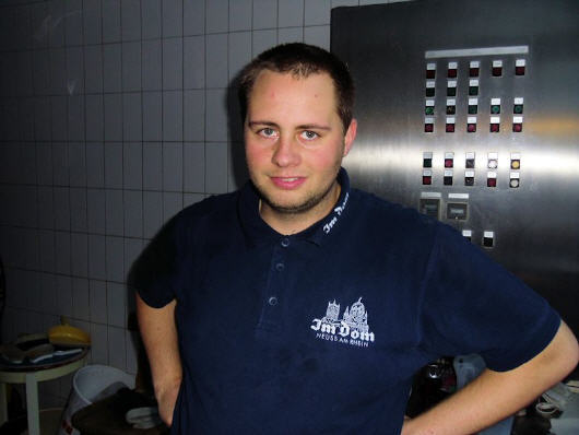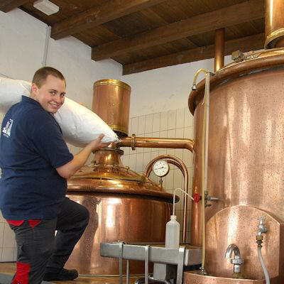 Gut acht Stunden vergehen zwischen dem Maischen an der Sudpfanne und dem Abschlauchen des frischen Bieres in den Gärtank. 100 Mal im Jahr soll der 24-jährige Brauer in der Hausbrauerei der Gaststätte "Im Dom" einen Sud nach eigener Rezeptur des Hauses ansetzen, 100 Mal im Doppelsudverfahren 2000 Liter "Doms Alt" brauen.