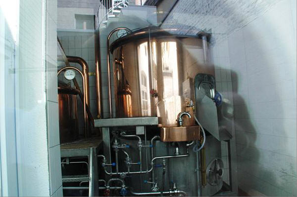 Die abgeläuterte Würze fließt nun in die Kupfer-Sudpfanne, wo sie 1-11/2 Stunden unter Beigabe von sehr feinem Hallertauer Aromahopfen gekocht wird. Dieser gibt den unvergleichlichen und angenehm herben Geschmack und das charakteristisch feine Aroma. Der Hopfen fördert auch die Haltbarkeit.