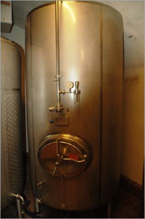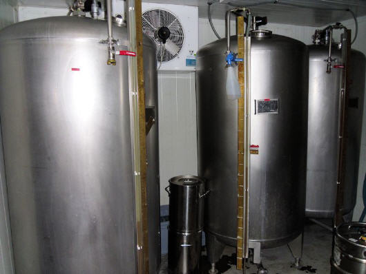Hier kann es mehrere Wochen bei Temperaturen um 0°-3 C nachgären und ausreifen. Das geschieht in 12 Edelstahltaks Lagertanks, wo es sich auf natürliche Weise mit Kohlensäure anreichert und bis zur geschmacklichen Vollendung ausreift.
