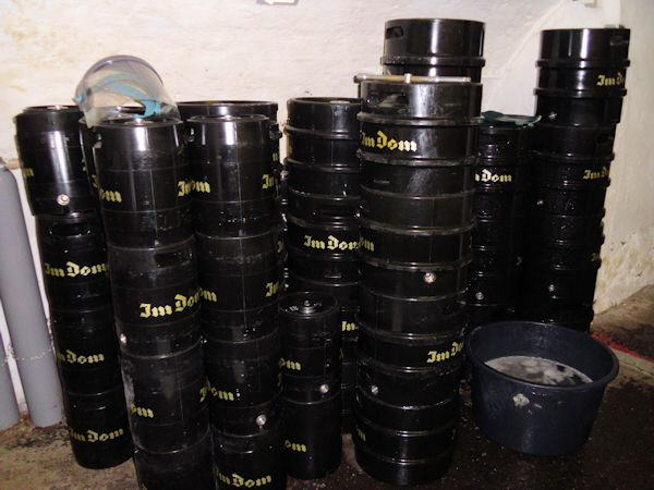 Nach der Ausreifung wird die Hefeteile vom Bier durch „abschießen„ der Hefe getrennt. Hier werden nochmals Trübstoffe entfernt, bevor Dom’s Alt in Fässer abgefüllt wird.