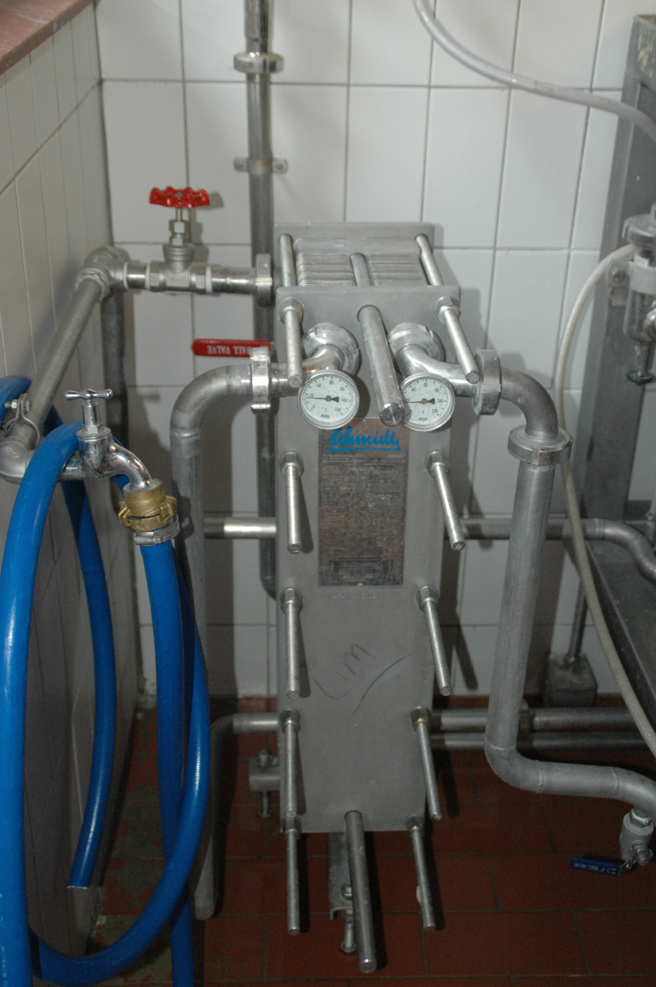 Um die Würze zu klären werden dann die Trübstoffe (Hopfenrückstände und Eiweiß) in einer Art Zentrifuge ausgeschieden.