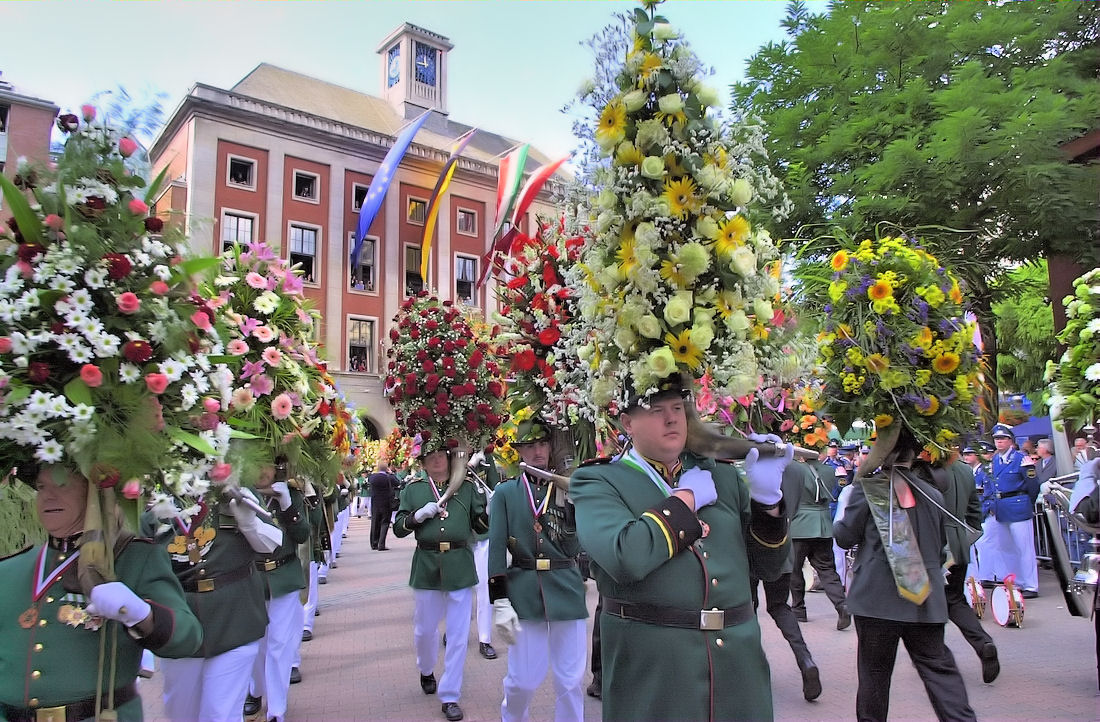 Der "Höhnes" hat zwar ein Ehrenamt, aber kein leichtes. Mit Stolz trägt er "sein" bis zu 20 kg schweres Blumenhorn über die Straßen und zeigt es den Gästen, Zuschauern und vor allem der amtierenden Majestät. Die Blumenhörner haben sich im Laufe der Zeit zu kunstvoll gebundenen und gesteckten Blumenarrangements, ja hin zu prunkvollen Kunstwerken entwickelt