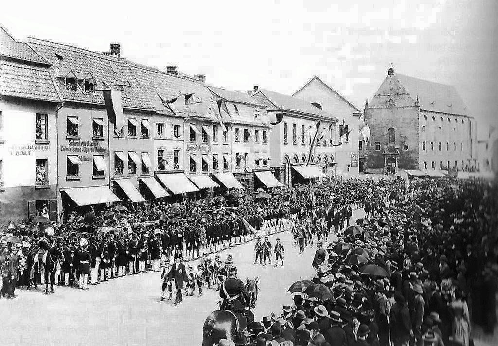 Interessant zu lesen war, wie viele Geschäfte sich in dieser Zeit auf dem kleinen Stück angesiedelt hatten. Vom Eckhaus an, bis zum Haus der ehemaligen Post vor dem Kaufhaus wo später ein hochragender Neubau errichtet wurde, von dessen Flachdach man einen hervorragenden Überblick über das schützenfestliche Geschehen hatte.
