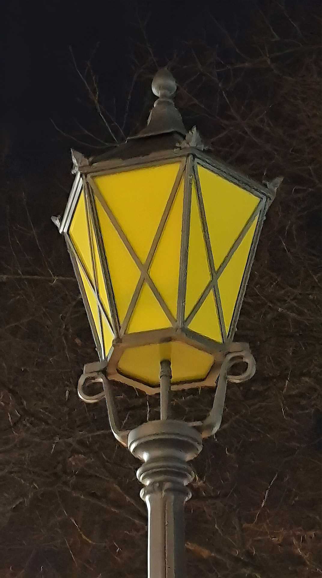 Was auf jeden Fall sein musste, fand Georg, die gelben Gläser und die charakteristische Form einer historischen Straßenlaterne - sowie es auch sein Orden darstellt.
