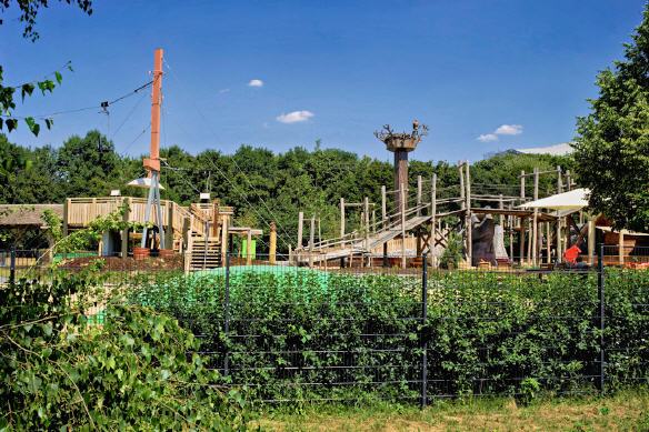 Für Kinder bietet die Abenteuer Alm Planschmöglichkeiten im Wasserdorf, Gelegenheiten zum Klettern auf dem Kraxelberg, Ausblick vom Adlerturm und jede Menge Nervenkitzel auf rasanten Rutschen.