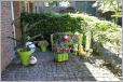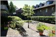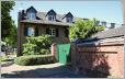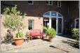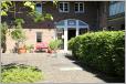 Repräsentativ-symmetrische Gebäudeanordnung: 2-geschossiger Seitenflügel, giebelständig, in jeweils 2 Achsen; dazwischen straßenseitige Abschluss Mauer mit übergiebeltem Mitteltor, Hausgiebel und Toranlage durch gegliederte Gestaltungselemente in Backstein betont.