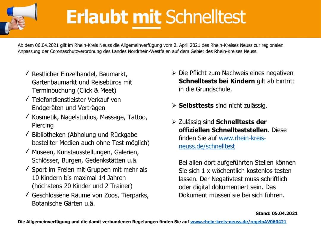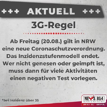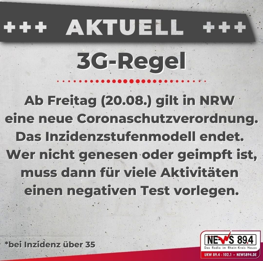 3G: Zutritt oder Teilnahme für Genesene, Geimpfte und Getestete (maximal 24 Stunden alter Schnelltest oder 48 Stunden alter PCR-Test)