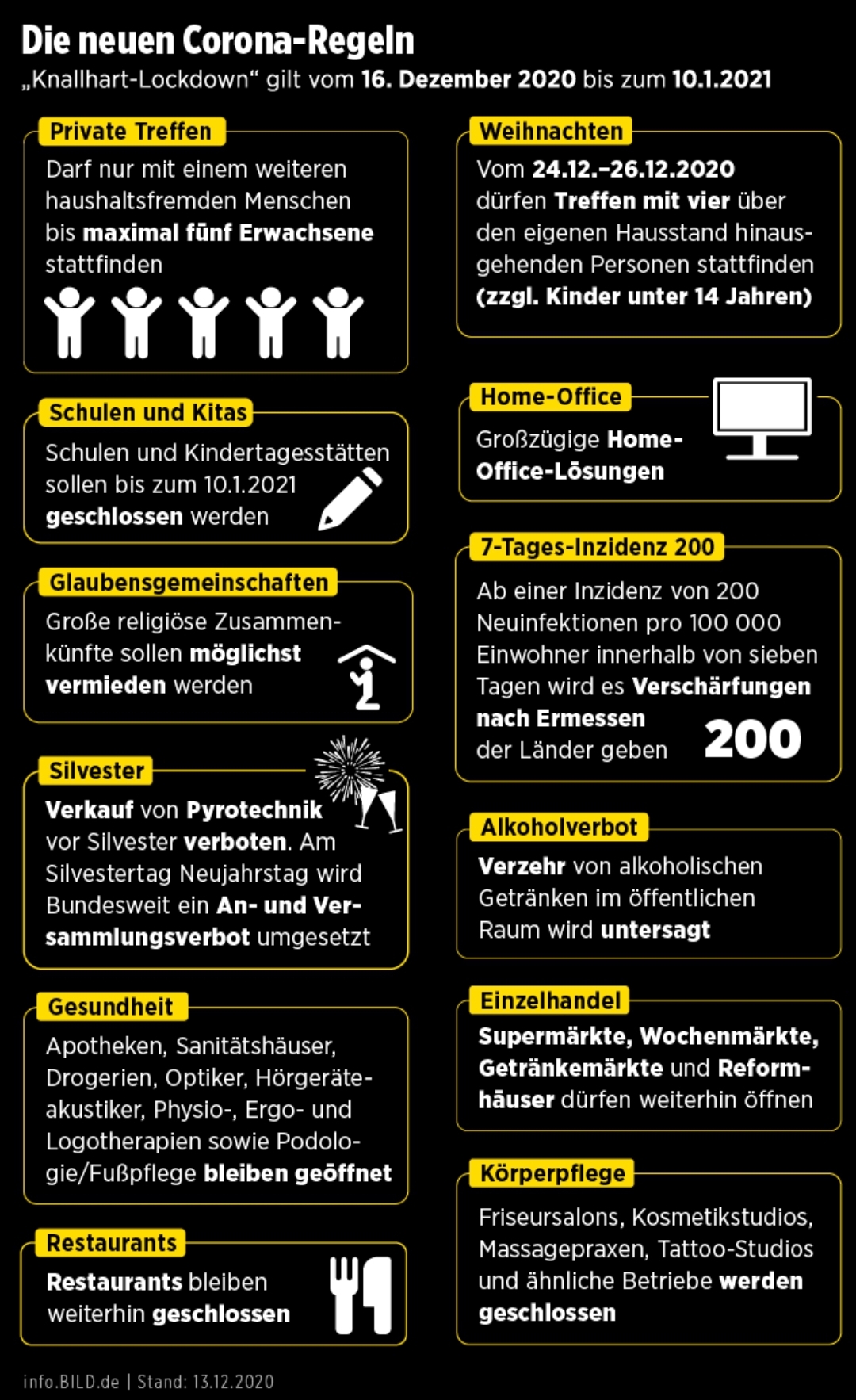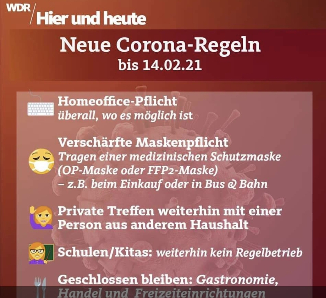 Dazu zählen im Wesentlichen Maßnahmen, die wir bereits aus dem Lockdown im Frühjahr kennen. Zum Teil wurden sie auch im leichten November-Lockdown angeordnet.