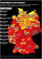Die Zahl der gemeldeten Todesfälle in Zusammenhang mit dem Coronavirus hat einen neuen Höchstwert erreicht. Innerhalb eines Tages übermittelten die deutschen Gesundheitsämter dem Robert-Koch-Institut (RKI) 1188 neue Todesfälle.