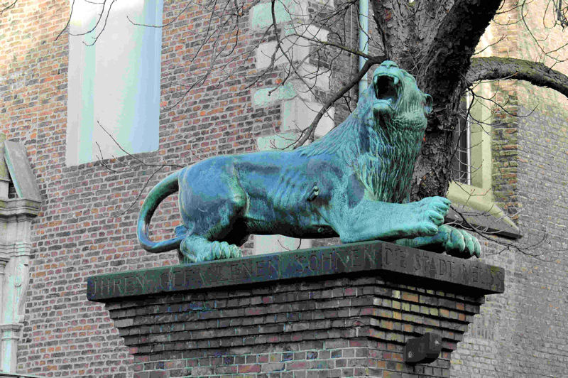 Doch am 10. März 1929, elf Jahre nach der Kapitulation im Ersten Weltkrieg, wurde es ein Denkmal der Niederlage, der Schmach und des Zorns: Der Löwe, der König der Tiere, ist tödlich getroffen. Der Stärkste im Tierreich ist gefallen - so wie die 902 Neusser Soldaten, die an den Fronten des Krieges ihr Leben lassen mussten.