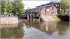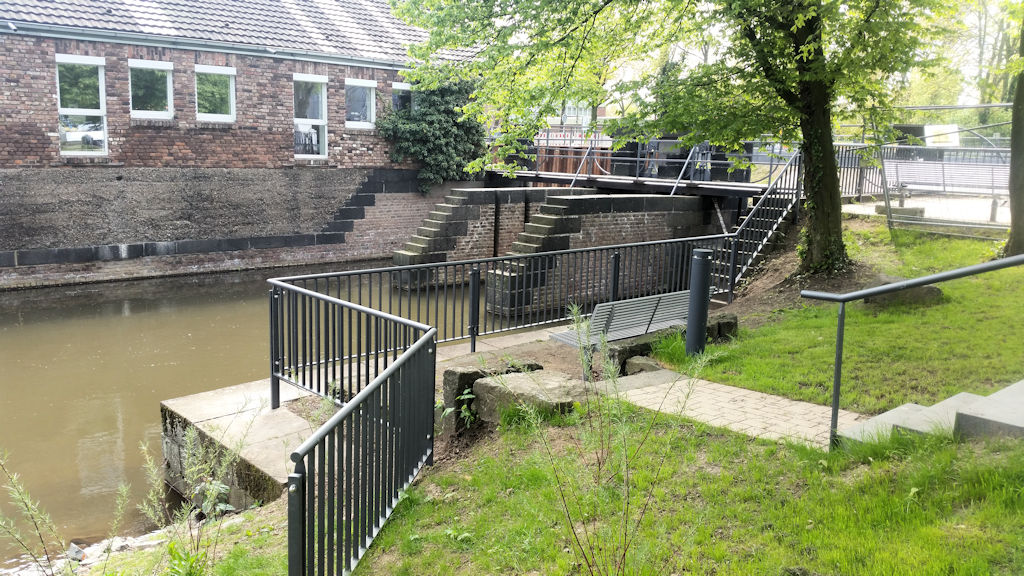 Die Stadt Neuss nennt es "Entlastungsbauwerk". Hier, am Zulauf der Obererft, wurde es für die Regulierung des Wasserstands im Nordkanal errichtet. Damit sollte sowohl dessen zuverlässige Schiffbarkeit als auch die Wasserversorgung der großen Mühlen am Stadtrand gewährleistet werden.