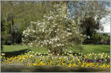 Folgen wir dem geschwungenen Weg hinab, so öffnet sich an der Weggabelung die dichtere Bepflanzung und gibt den Blick frei auf die weiten, wohl modulierten Rasenflächen, die gesäumt von Bäumen und Sträuchern das Auge ruhen lassen, und über sie hinweg in nördlicher Richtung auf den Windmühlenturm. Gehen wir jedoch weiter, finden wir in einer Senke eine Besonderheit Weyhe'scher Parkgestaltung, einen runden freien Platz, der mit Holländischen Linden umpflanzt ist. Weyhe schreibt,