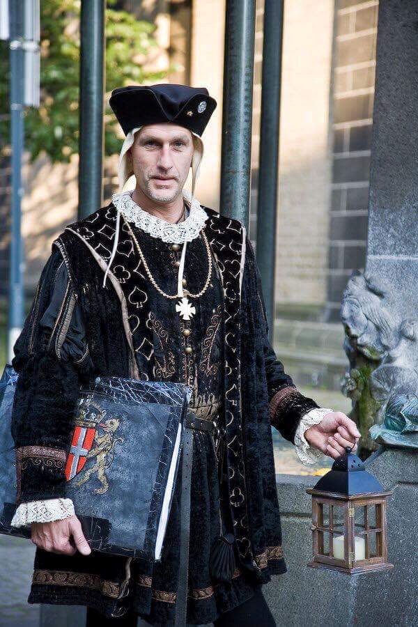 Doch der "schwarze Mönch", der im Zivilberuf Florist ist, hat nichts mit jener Comic-Figur zu tun. Vielmehr ist Wessels Stadtführer, der in seinem Phantasie-Habit die ehemalige Klosterlandschaft von Neuss vorstellt.