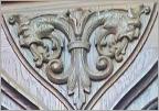 An dieser Fassade gut zu erkennen ist, Fleur de Lys , dieses Symbol steht außerhalb der Heraldik als Symbol der Reinheit und Unschuld.