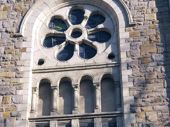 Zu sehen ist hier an der Dreikönigen Kirche ein Sonnenrad, welches eines, um nicht zu sagen auch das älteste Symbol, der uns bekannten Menschheitsgeschichte. Es ist ein heiliges, immer gültiges, göttliches Symbol, welches uns aus vorgeschichtlichen Kulturen und Religionen in die heutige Zeit überliefert wurde.