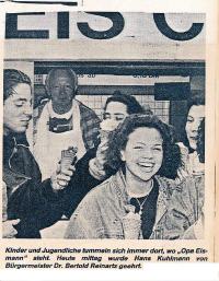 Der immer freundliche und lustige Kullemann ging auf die, wünsche seiner kleinen Kunden stets ein. Auch dann, wenn ein Kind für 10 Pfennige gemischtes Eis wollte. Selbst wenn mal einer seiner kleinen Kunden kein Geld hatte.