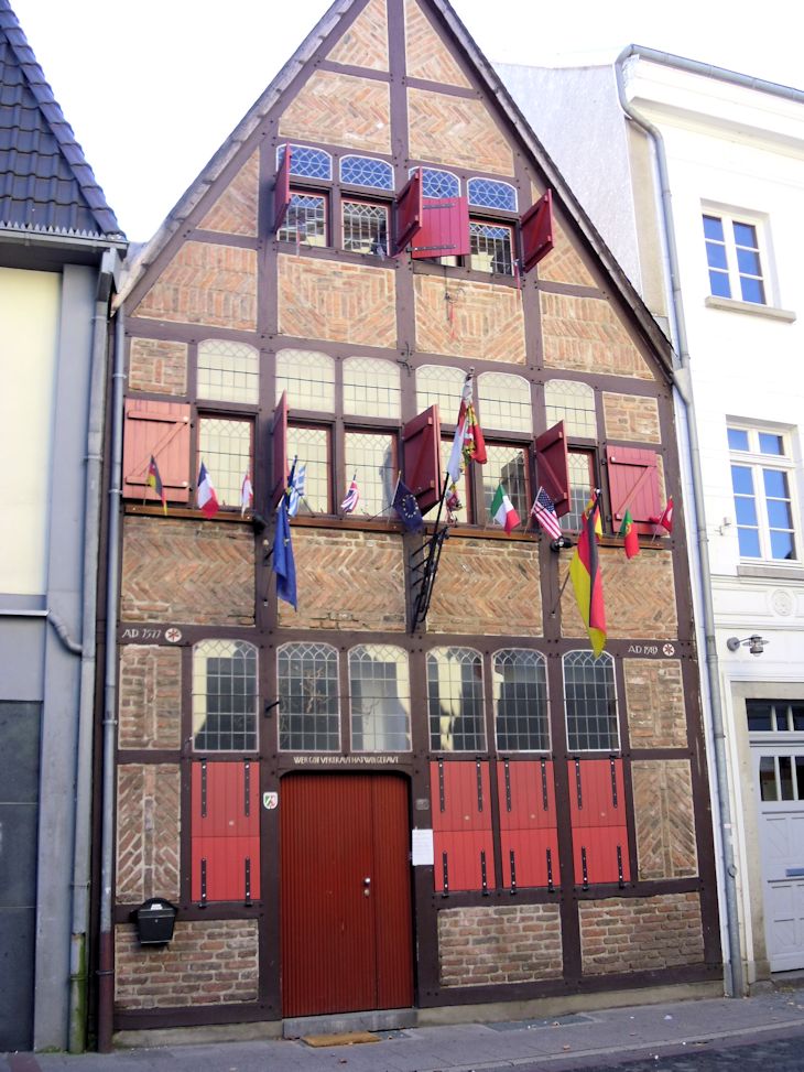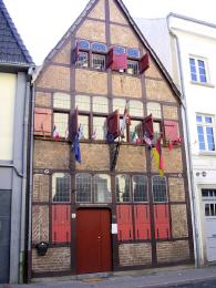 Das Fachwerkhaus, um das es hier geht, wurde 1571 erbaut und es hatte und hat zweieinhalb Geschosse. Geschosse, wenn auch anderer Art, flogen im sog. Kölner Krieg von 1583 bis 1588 hin und her – und zwar zwischen den kurkölnischen und bayerischen Truppen einerseits und kurpfälzischen Truppen um den zum Teufel gejagten Erzbischof andererseits.