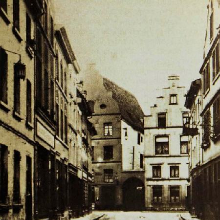 Hinten links die heutige Gaststätte "Schärpe Eck" und das heutige Brauhaus Früh rechts daneben das damalige Restaurant "Zum goldenen Stern"