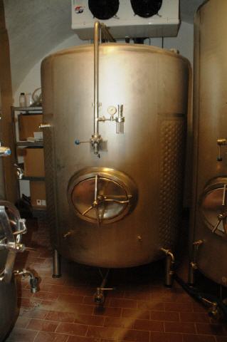 Hier kann es mehrere Wochen bei Temperaturen um 0°-3 C nachgären und ausreifen. Das geschieht in 12 Edelstahltaks Lagertanks, wo es sich auf natürliche Weise mit Kohlensäure anreichert und bis zur geschmacklichen Vollendung ausreift.