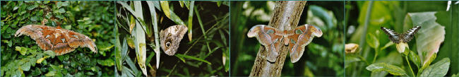 | [Abbildung] | Die Tagfalter schlüpfen aus Puppen, die gut getarnt an Blättern und Ästen hängen. Die Puppen der Nachtfalter verstecken sich zuweilen in Knospen, die an trockene Blätter erinnern. |