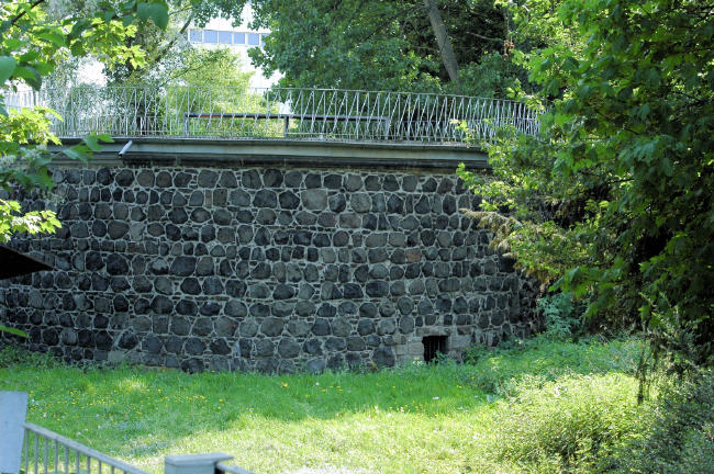 Westlich des Hügels lag, für die mittelalterliche Stadtbefestigung ein natürlicher Querriegel, das ausgedehnte Broich- oder Bruchgebiet der Krurniederung, die mit dem Niersbruch in Verbindung stand, welches über ein altes Stromtal zur Maas führte; die Krur, die im Norden von Neuss entsprang, mündete in der Nähe des heutigen Rosengartens in den Stadtgraben.