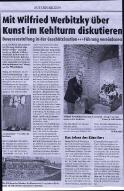 Er ist ein Mann, der gerne seiner Meinung deutlich Ausdruck verleiht – auch mit kreativen Mitteln: Wilfried Werbitzky, Künstler aus der Neusser Nordstadt, hat jetzt zwei seiner Arbeiten im Kehlturm ausgestellt und zeigt sie dort im Rahmen von Führungen der Öffentlichkeit.