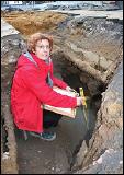 Dr. Karin Streiwe aus dem Team von Stadtarchäologin Sabine Sauer am mittelalterlichen Abwasserkanal
