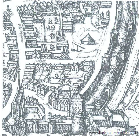 Der Glockhammer bildete einst den nördlichen Abschluss des geistlichen Zentrums, in dem die Amtsgebäude des Erzbischofs und das Quirinusstift lagen. Hier im unmittelbaren Anschluss an den Bereich des Stadtherrn, hatte sich auch die Judengemeinde niedergelassen, die sich im Mittelalter ja nur auf Grund besonderer Privilegien des Landesherrn oder des Kaisers in irgendeiner Stadt bilden durfte. Da diese aber zum Wohl von Handel und Wirtschaft ihrer Städte ein besonderes Interesse an den Juden und übrigen Kaufleuten hatten, gestaltete sich das Zusammenleben zwischen Juden und Christen bis zur Zeit der Kreuzzüge sehr harmonisch.