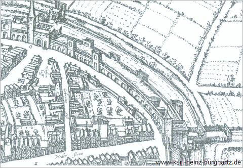 Wo der Hamtorwall vom Niederwall abgelöst wird, stand einmal das Niedertor, von wo im Mittelalter der Handelsweg nach den Niederlanden ging über die Steinhausstraße (im vorderen Teil heute Tückingstrasse genannt), die den Glehner Weg, die jetzige Kapitelstraße, kreuzte.