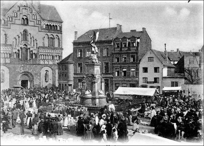 Markttreiben auf dem Münsterplatz um 1900 Quelle: Neusser Stadtarchiv