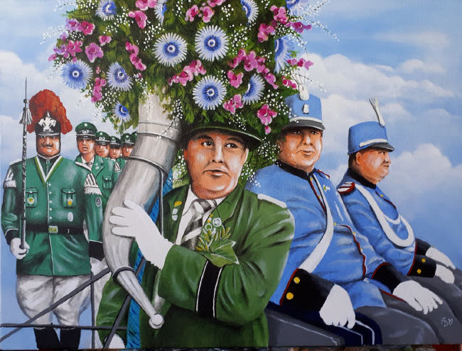 Die Schützengilde existierte bereits 1850 bis 1891 und wurde 1962 wiederbegründet. Sie tragen einen grünen Rock, eine schwarze Hose und einen grünen Hut mit weißer Feder. Mit ca.500 Schützen sind auch sie ein kleines Korps.