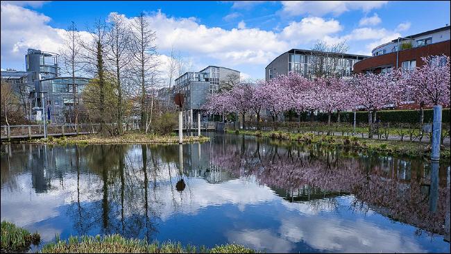 Eine besonders schöne Allee japanischer Kirschbäume befindet sich im Stadtpark am Kaarster Rathaus. Die "La Madeleine-Allee" ist nach der nordfranzösischen Partnerstadt benannt. |