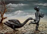 Jetzt malt er Bilder die er immer schon mal malen wollte aber nie die Zeit dafür hatte, hin und wieder auch Auftragsarbeiten.