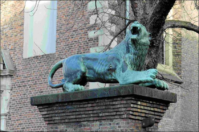 Doch am 10. März 1929, elf Jahre nach der Kapitulation im Ersten Weltkrieg, wurde es ein Denkmal der Niederlage, der Schmach und des Zorns: Der Löwe, der König der Tiere, ist tödlich getroffen. Der Stärkste im Tierreich ist gefallen - so wie die 902 Neusser Soldaten, die an den Fronten des Krieges ihr Leben lassen mussten.