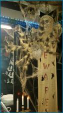 Zwei freundliche Menschen also, die sich ihren Partykeller mit allerlei drolligen Halloween-Sachen eingerichtet haben.