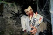 Hier liegt eine Ratte mit glühenden Augen herum, dort ein von innen beleuchteter Totenkopf.